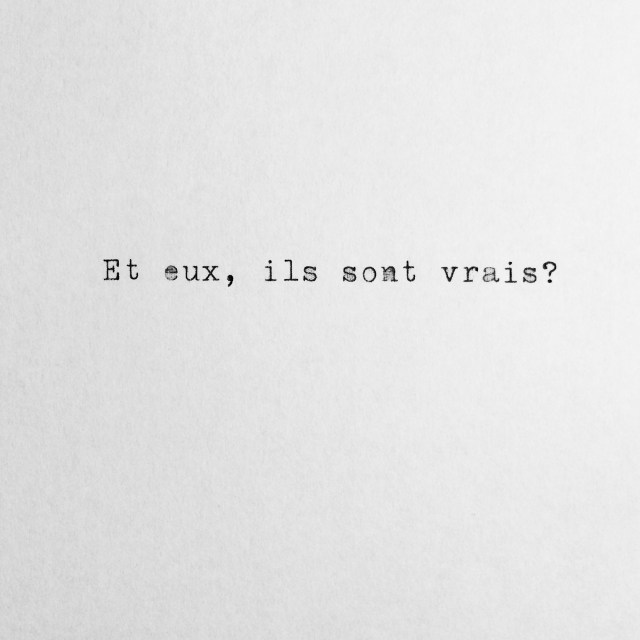 “Et eux, ils sont vrais?” a demandé Sophie Calle au sujet de quelqu’un qui travaillait dans un bureau. J’ai dit que moi-même je ne savais pas si j’étais vraie.
