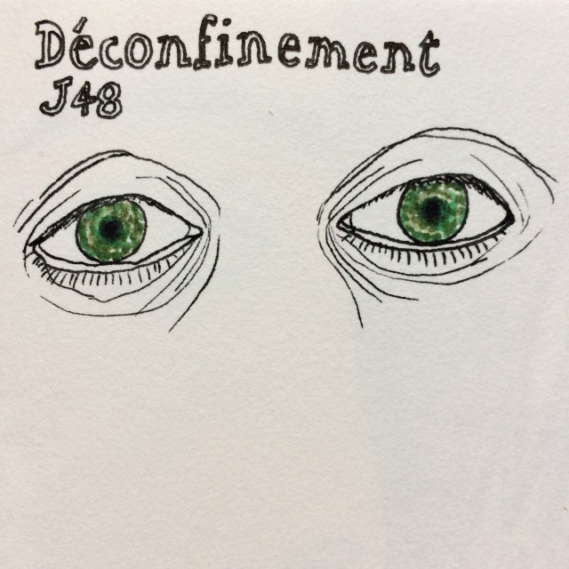 Après les Catacombes, on avait prévu une deuxième visite, pour laquelle la réservation était obligatoire aussi. Ca appartenait à la même catégorie, mais dans un autre style, puisqu’il s’agit de la maison de retraite où vit la mère d’Ambroise. Sa chambre est en réalité géographiquement opposée aux ossuaires qu’on a visités : elle est 20 mètres au dessus du niveau de la terre, au dernier étage, celui qui est fermé de l’intérieur. C’est l’étage de ceux dont les corps sont bien présents mais les esprits plus tellement. On ne sait pas où ils sont partis se promener. Celui de la mère d’Ambroise, j’ai ma petite idée; je crois qu’il est par ici, dans cette pièce où j’écris, ou bien peut-être dans celle où je dessine, ou alors même dans celle où Céleste prend son bain et où est installée la machine à laver. Son esprit se promène dans le jardin, il se niche dans le figuier et salue le poisson dans son bassin. Une chose est sûre, il n’est pas dans sa tête. On l’a encore constaté. On lui a dit: regarde, regardez, c’est Céleste. Elle est restée prostrée, les yeux aussi vides que les crânes entassés de la matinée.