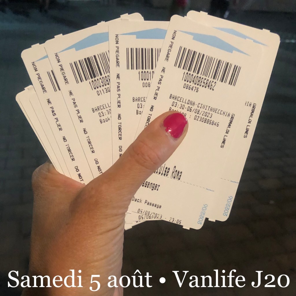 On est sur le parking de Grimaldi Lines, au port de Barcelone. Le bateau a trois heures de retard, ce qui signifie qu’on part au beau milieu de la nuit. Peu nous importe, après les quatre jours de décalage par rapport à notre planning initial. Je couche les enfants sur la couchette du bas qu’on vient de déplier, et on les réveillera au moment d’embarquer. Je risque de m’endormir aussi. On n’aura pas de cabine dans le ferry, donc autant profiter du lit. Après avoir dormi à bord, le van nous semblera tout confort!