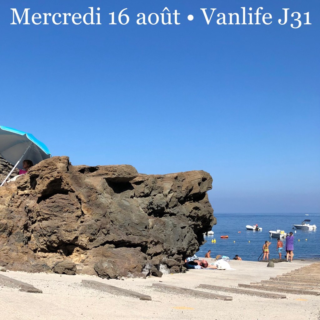 On a passé la fin d’après-midi sur la Cala di Levante, qui n’est pas une plage mais un mouillage entouré de rochers. On a trouvé un coin d’ombre où s’installer. J’ai sauté à l’eau avec les enfants et à peine dedans, j’ai entendu les gens à côté parler de meduse. « Elles sont méchantes? » ai-je demandé en italien. Eh oui! Les adolescents les pêchaient dans leurs épuisettes. Elles étaient roses et petites. Pas de tout repos, cette île. Une famille de Français rencontrés là nous ont dit qu’ils la trouvaient hostile.