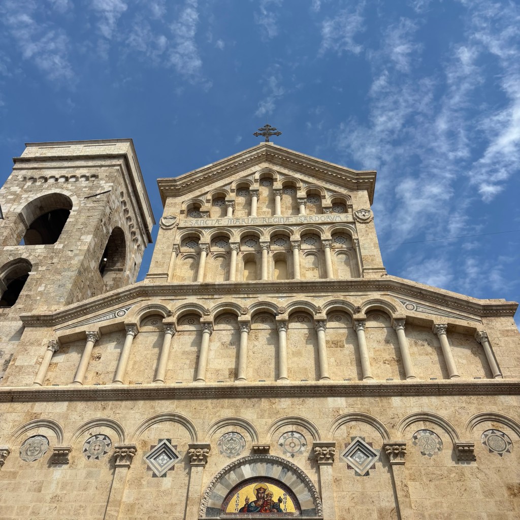 Entre mon réveil à l’aube, avec les rayons brûlants et orange du soleil derrière la mer, la baignade sur la petite plage de galets avec les enfants, et l’arrivée à Cagliari, j’ai perdu mon livre. Dommage, il était beau et bien écrit, et se passait en Italie. Je ne saurai pas pour l’instant la suite de l’histoire d’Elena et Lila, les deux amies de Napoli dont Elena Ferrante raconte la vie. La possibilité de l’acheter en italien me traverse l’esprit. Il faudrait une librairie ouverte durant le déjeuner.