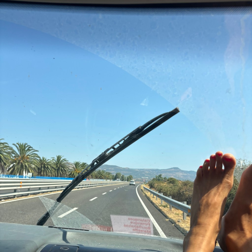 Buon Ferragosto? Je suis en train de le passer dans le van, sur une autoroute à deux doigts de la fusion. Il fait chaud, le van s’en est bien aperçu, et il dégage depuis quelque temps une odeur d’œuf pourri étrange. C’est par intermittence, et on a pu croire un temps que c’était la nature environnante. J’espère qu’on ne paiera pas cher cette négligence. Tout est fermé. Il ne reste qu’à rouler – pas trop vite, et dans un léger état de stress – jusqu’à Porto Torres, pour le ferry ce soir.